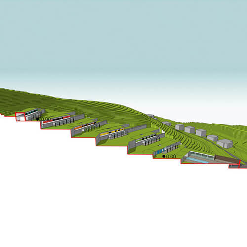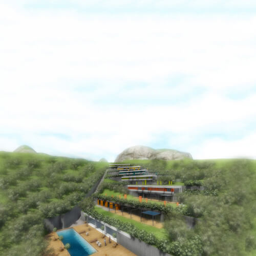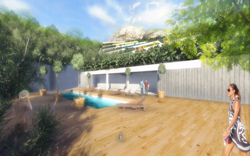Строительство 6 вилл площадью 400 м2 каждая, социальных объектов и плавательного бассейна на общей площади 12.000 м2 .
