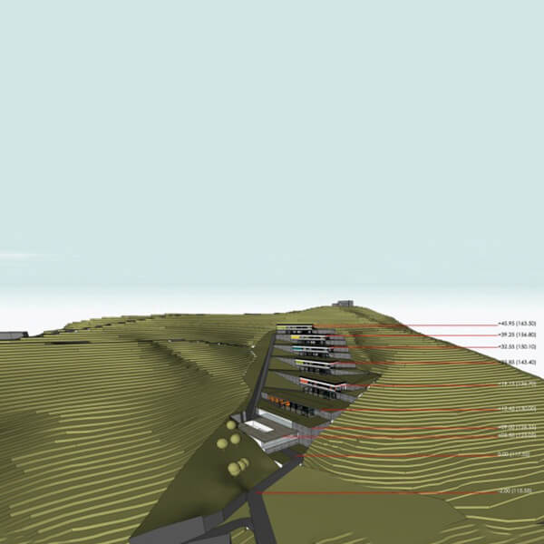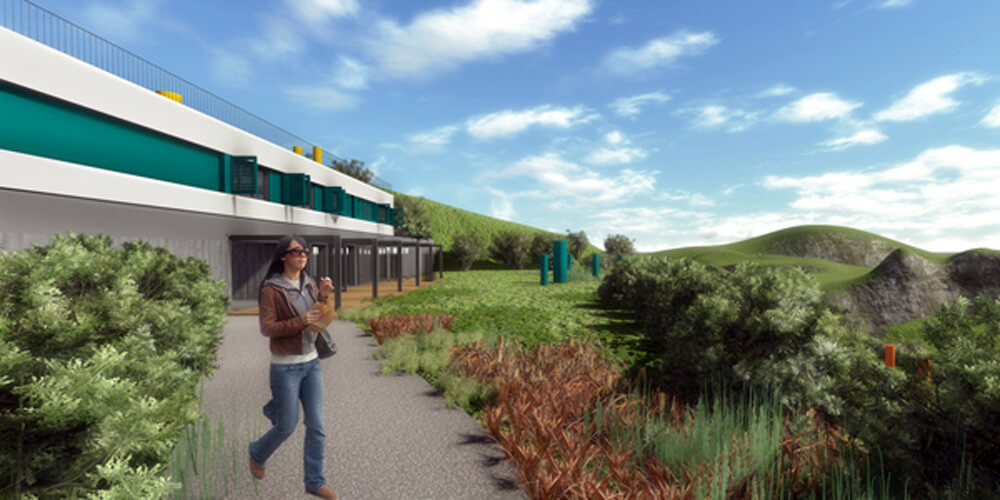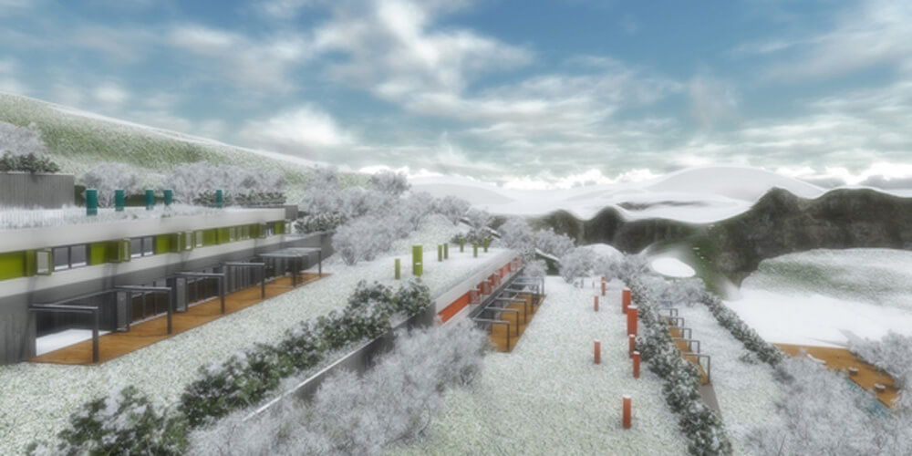Были учтены преобладающие в данном регионе ветры и режимы погоды, в качестве вентиляционных и энергетических систем было использовано пассивное кондиционирование с применением фотовольтаических фасадных панелей и розы ветров.